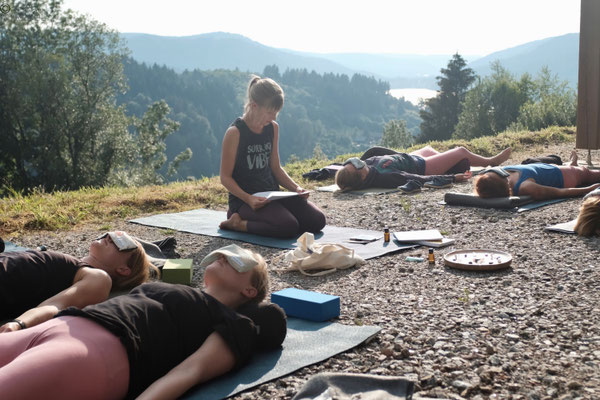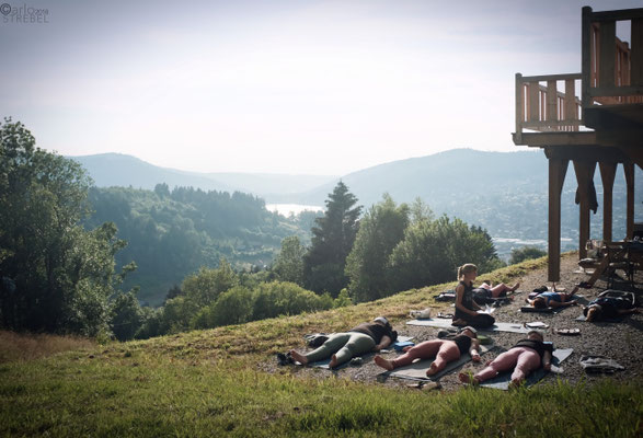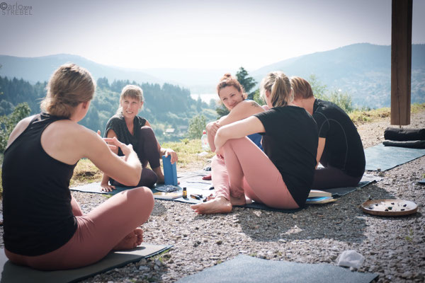 Das Yoga-Wochenende in den Vogesen war großartig. Was gibt es schöneres als als mit Blick auf den See Yoga zu praktizieren? Jasmin fand dabei die perfekte Balance aus Anstrengung und Entspannung. Neben kraftvollen Vinyasa Einheiten erzählte uns Jasmin einiges über die Wirkung von Heilsteinen und Ätherischen Ölen und führte uns durch eine Tiefenentspannung.